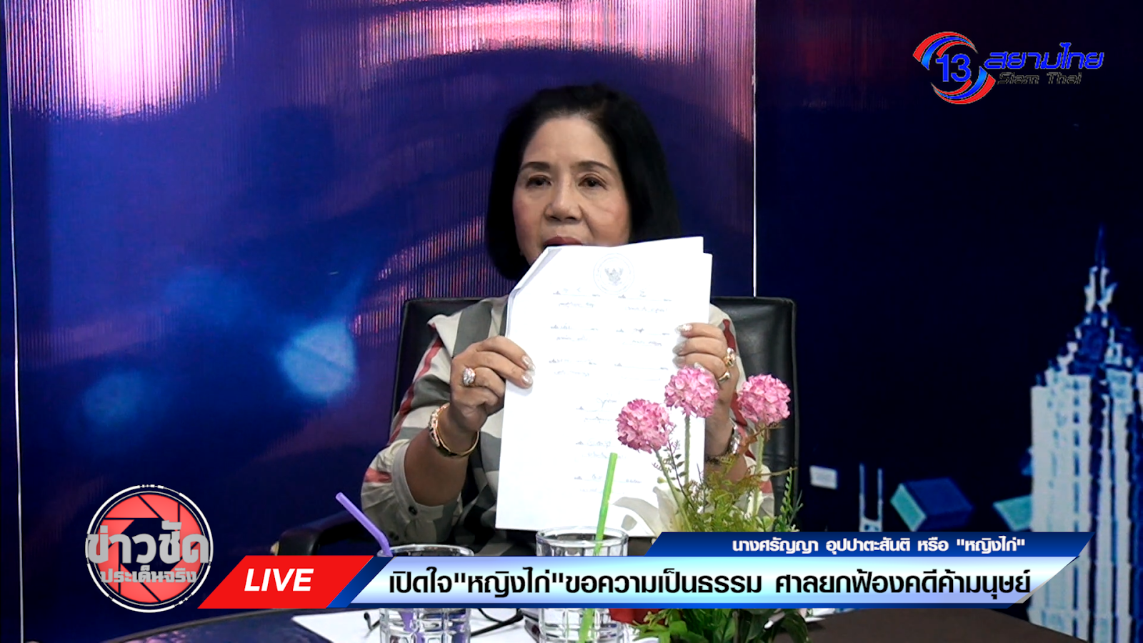 เมื่อวันที่ 6 ตุลาคม 2565 เวลา 10.00น.นางศรัญญา อุปปาตะสันติ หรือ "หญิงไก่" เดินทางเข้าร้องต่อสื่อมวลชนผ่านรายการข่าวชัดประเด็นจริง ช่อง13 สยามไทย พร้อมเอกสารหลักฐานต่างๆ หลังตกเป็นจำเลยสังคมมานานในคดีค้ามนุษย์ ซึ่งต่อมาศาลได้มีคำพิพากษายกฟ้องทุกคดี รวมทั้งหมด15 คดี ทำให้ "หญิงไก่" พ้นความผิดและได้รับพระราชทานอภัยโทษ มีอิสระภาพอีกครั้ง แต่ยังมีกลุ่มบุคคลได้ออกมาพูดถึงและให้ข่าวที่ไม่เป็นความจริงเกี่ยวกับตน ซึ่งตนจึงอยากมาร้องต่อสื่อ ขอใช้พื้นที่ในการชี้แจงข้อเท็จจริงต่างๆ ให้สังคมรับรู้ หลังตนตกเป็นจำเลยสังคมมาโดยตลอด